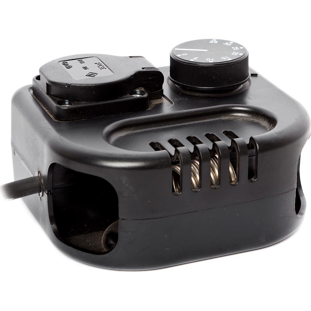 Комнатный термостат Master предназначен для использования в домашних нагревательных приборах. Оборудование поставляется в комплекте с кабелем длиной 3 м, оснащенным сетевым переходником (вилкой). Термостат позволяет поддерживать температуру в диапазоне от 0 до 36 градусов и имеет погрешность в 1,5 градуса.